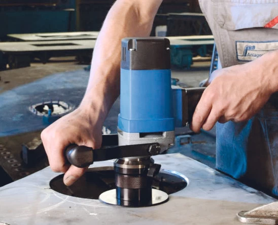 Smussatrice con avvio dolce e termostato di sicurezza in esecuzione compatta per la lavorazione di bordi diritti, raggi interni ed esterni nonché fori a partire da ⌀ 22 mm. La regolazione micrometrica consente di sbavare smussi leggeri nonché smussi larghi. Con testa migliorata per forze di taglio ridotte. Smusso 45° − larghezza in continuo 0 – 6 mm.