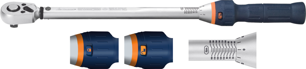 Chiave dinamometrica maneggevole, molto compatta, ad asta unica, impostabile mediante scala e rilascio automatico. Precisione di ripetibilità estremamente alta grazie all’impiego di materiali di prima qualità e di pezzi soggetti a usura come molle di compressione sottoposti ad un trattamento preliminare speciale o selezionati. Utilizzabile per serraggio orario e antiorario grazie all’inversione del cricchetto.
