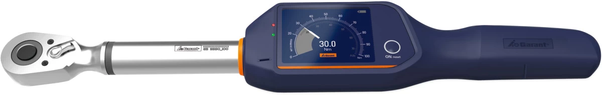 Chiave dinamometrica elettrica di alta precisione a scala graduata digitale. Corpo in acciaio, cromato opaco, cricchetto intercambiabile fisso ed estrattore. Visualizzazione digitale del valore in Nm e dello stato della batteria. Un solo tasto di comando per accensione e reset; spegnimento automatico dopo 2 minuti.