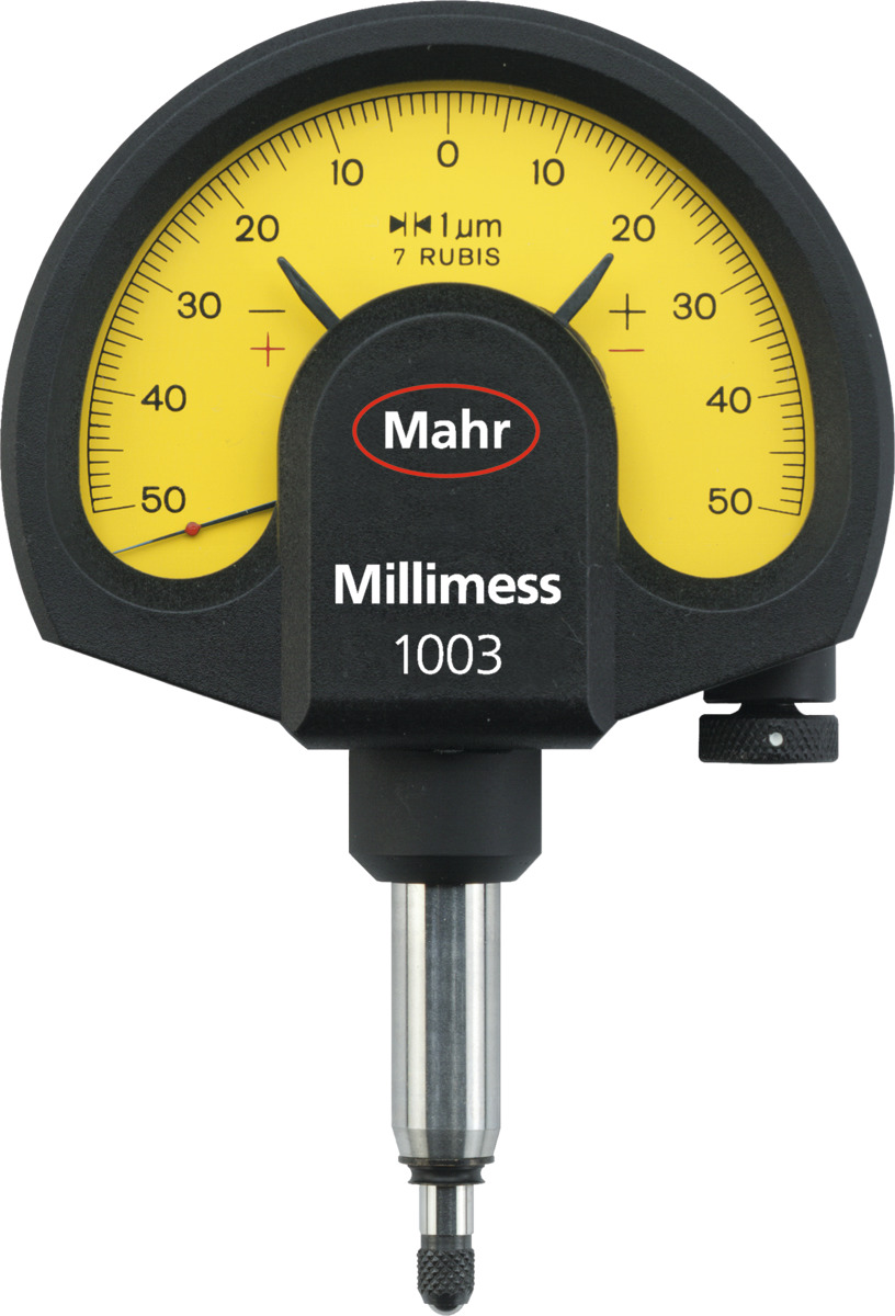 Strumento di misura con meccanismo montato su rubini, struttura particolarmente robusta per l’utilizzo in produzione.
