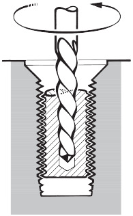 Per svitare viti rotte con filettatura destra (⌀ di foratura da tabella; girare a sinistra l’estrattore per viti).